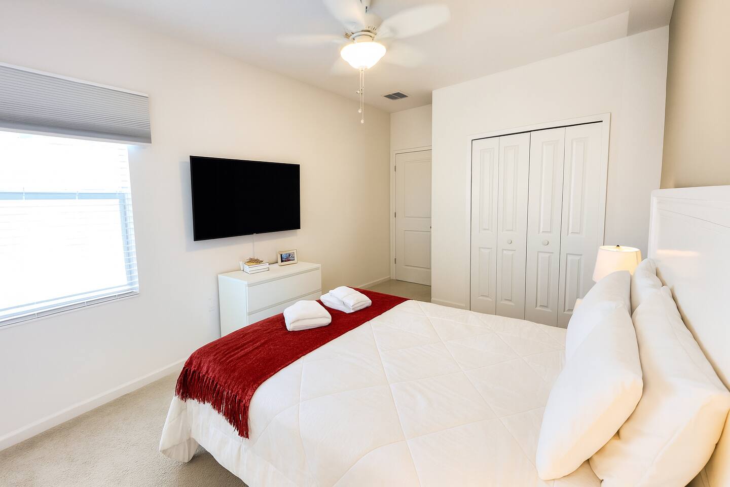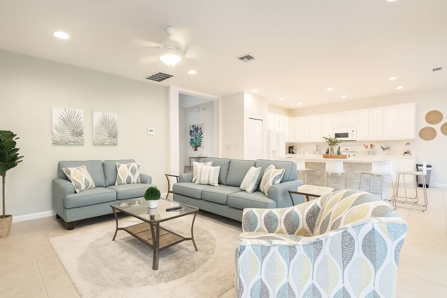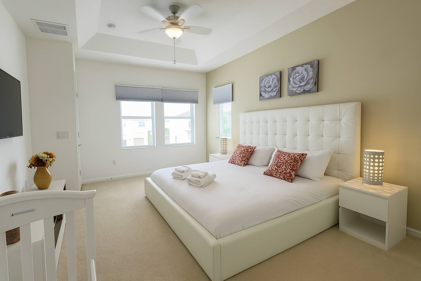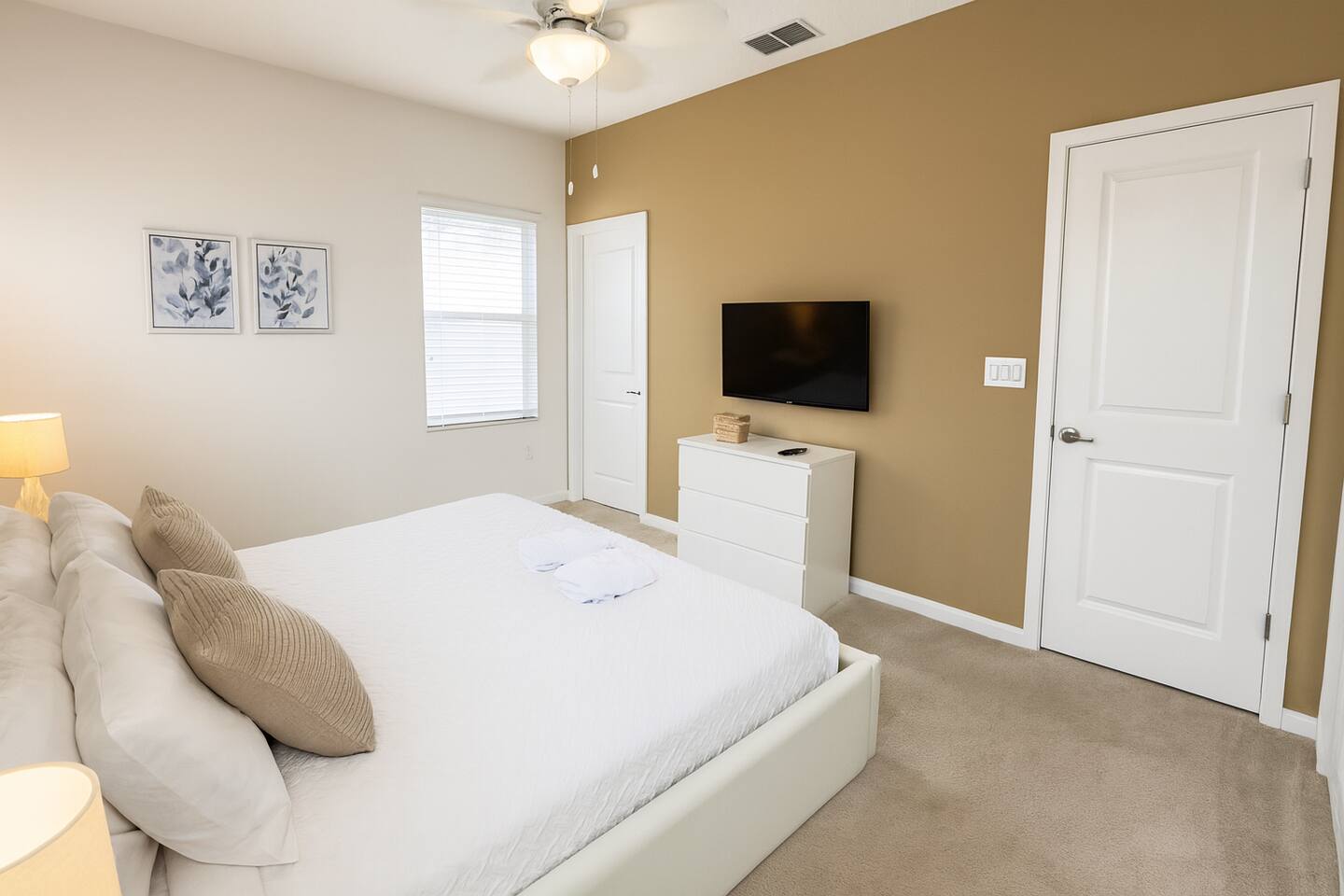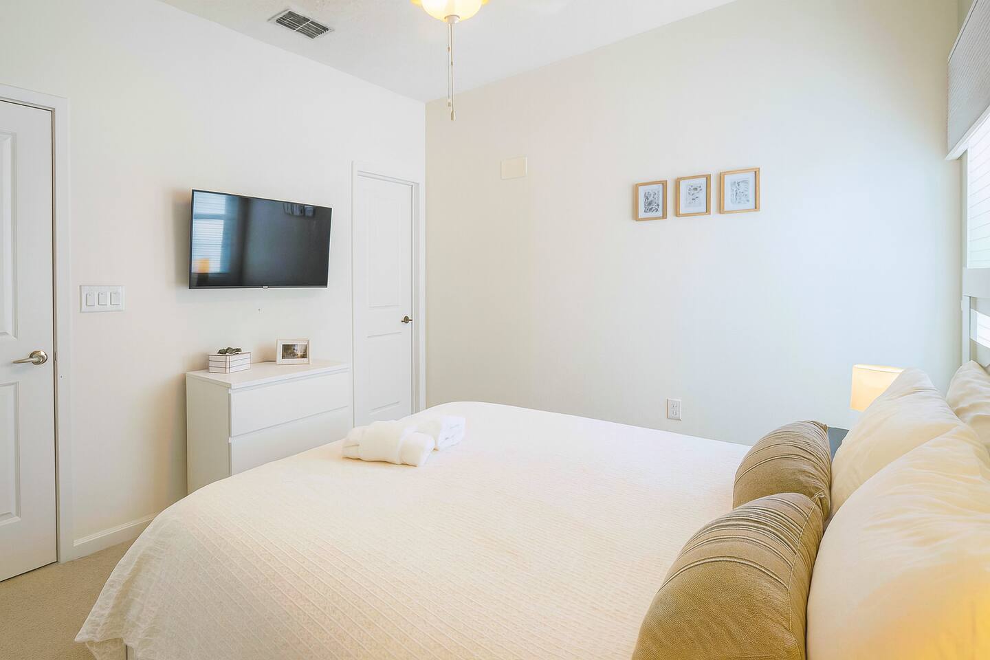 🌴Step into this spacious 3,382 sq. ft. retreat featuring 6 gorgeous bedrooms, including two master suites. Each room has its own private bathroom and TV, ensuring privacy and convenience for everyone. You’ll find one master suite on the first floor and another upstairs, with all rooms conveniently close to the laundry area. 🎬 Movie nights made magical! Gather in the private home theater, equipped with a 50” HD TV, for a cozy cinema experience after a fun day at the parks. 🍽️ Cook, dine, and unwind together. The gourmet kitchen flows seamlessly into the elegant dining and living areas, which feature another 50” HD TV and huge glass doors leading to the patio and private heated pool (heating available upon request). Fire up the grill, share stories, and make memories that last a lifetime! 🏡 The resort experience. Located in the exclusive gated community of Sonoma Resort, you’ll enjoy 24-hour security, a Clubhouse, a fully equipped gym, and a stunning community pool with jacuzzi and waterfalls. Explore the resort’s scenic bike and walking trails, surrounded by lush lakes and nature — part of the beautiful Shingle Creek, the headwaters of the Everglades. 🛍️ Prime location! Just minutes away from everything you need — Publix, The Loop shopping center, Walmart, cafes, and restaurants. 🏰 Disney Parks: 20 minutes 🎢 Universal Studios: 30 minutes (via I-4) ☀️ Historic Downtown Kissimmee & Lake Toho: just a short drive away 🚗 Check-in & access. You’ll be pre-registered at the resort entrance — simply provide your name and the home’s address to the gate attendant. You’ll then receive your door code in the check-in instructions. 💬 Your host: Bruna is always available via chat or phone for any assistance. For emergencies, a local supervisor is also ready to help. 💡 Extra Services & Fees: Pool heater: $50/day (for the entire stay) Optional daily cleaning: $150/day Propane for grill: $50 per bottle (upon request) No smoking: $2000 fine Parking: 2 spaces in front of the home, 1 space on the ramp; additional parking available at the Clubhouse. Cars parked on grass or sidewalks may be towed at guest’s expense.