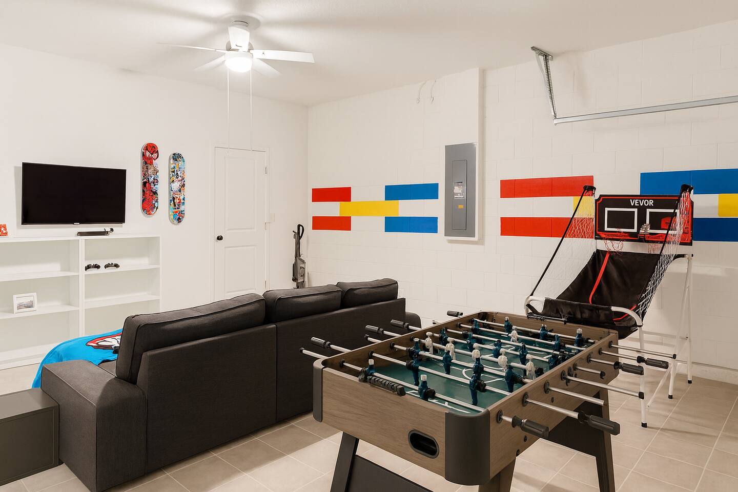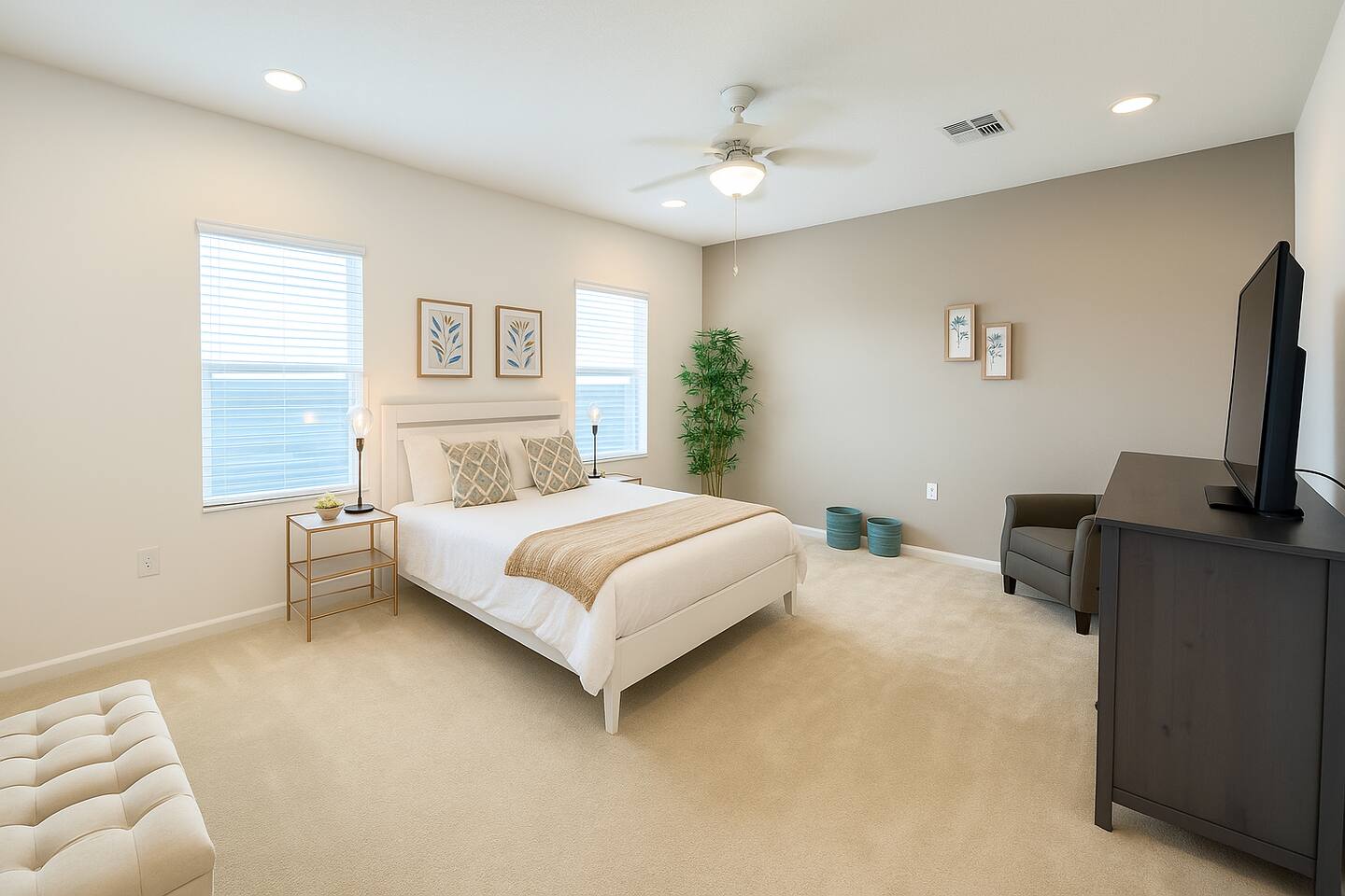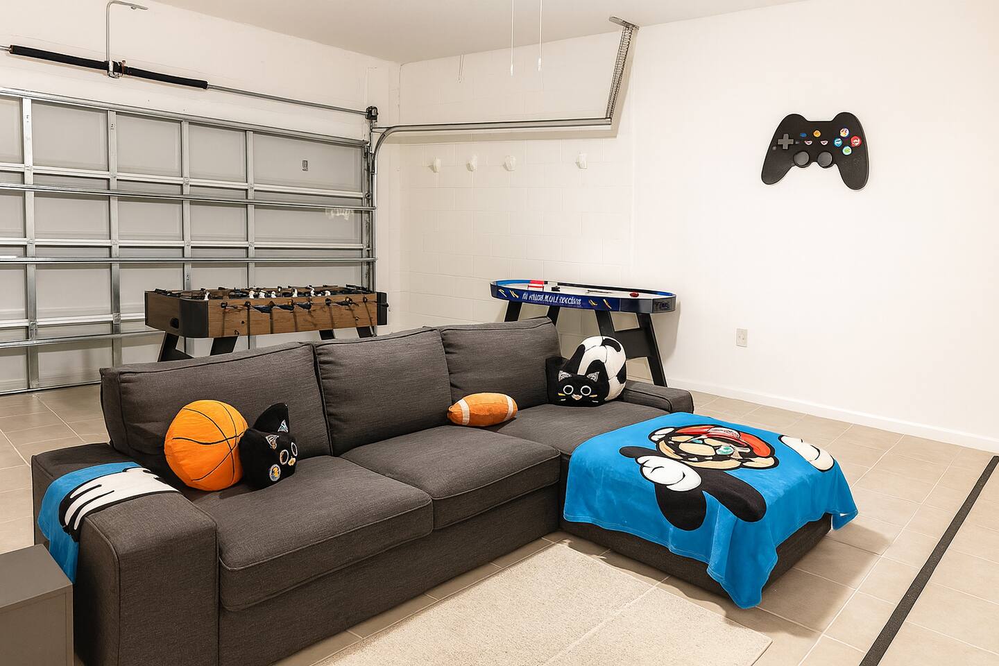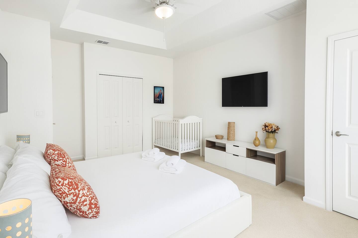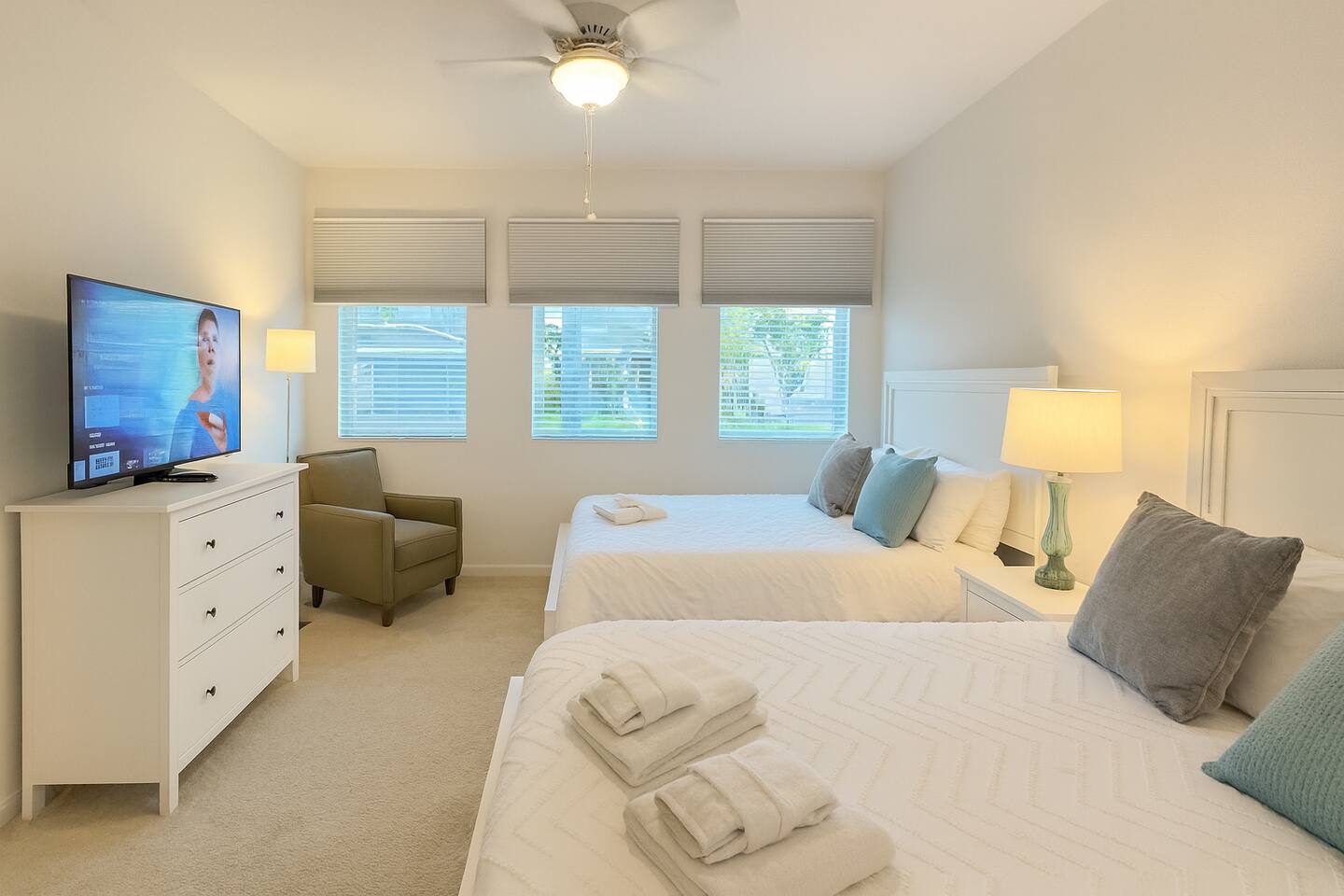🌴Step into this spacious 3,382 sq. ft. retreat featuring 6 gorgeous bedrooms, including two master suites. Each room has its own private bathroom and TV, ensuring privacy and convenience for everyone. You’ll find one master suite on the first floor and another upstairs, with all rooms conveniently close to the laundry area. 🎬 Movie nights made magical! Gather in the private home theater, equipped with a 50” HD TV, for a cozy cinema experience after a fun day at the parks. 🍽️ Cook, dine, and unwind together. The gourmet kitchen flows seamlessly into the elegant dining and living areas, which feature another 50” HD TV and huge glass doors leading to the patio and private heated pool (heating available upon request). Fire up the grill, share stories, and make memories that last a lifetime! 🏡 The resort experience. Located in the exclusive gated community of Sonoma Resort, you’ll enjoy 24-hour security, a Clubhouse, a fully equipped gym, and a stunning community pool with jacuzzi and waterfalls. Explore the resort’s scenic bike and walking trails, surrounded by lush lakes and nature — part of the beautiful Shingle Creek, the headwaters of the Everglades. 🛍️ Prime location! Just minutes away from everything you need — Publix, The Loop shopping center, Walmart, cafes, and restaurants. 🏰 Disney Parks: 20 minutes 🎢 Universal Studios: 30 minutes (via I-4) ☀️ Historic Downtown Kissimmee & Lake Toho: just a short drive away 🚗 Check-in & access. You’ll be pre-registered at the resort entrance — simply provide your name and the home’s address to the gate attendant. You’ll then receive your door code in the check-in instructions. 💬 Your host: Bruna is always available via chat or phone for any assistance. For emergencies, a local supervisor is also ready to help. 💡 Extra Services & Fees: Pool heater: $50/day (for the entire stay) Optional daily cleaning: $150/day Propane for grill: $50 per bottle (upon request) No smoking: $2000 fine Parking: 2 spaces in front of the home, 1 space on the ramp; additional parking available at the Clubhouse. Cars parked on grass or sidewalks may be towed at guest’s expense.