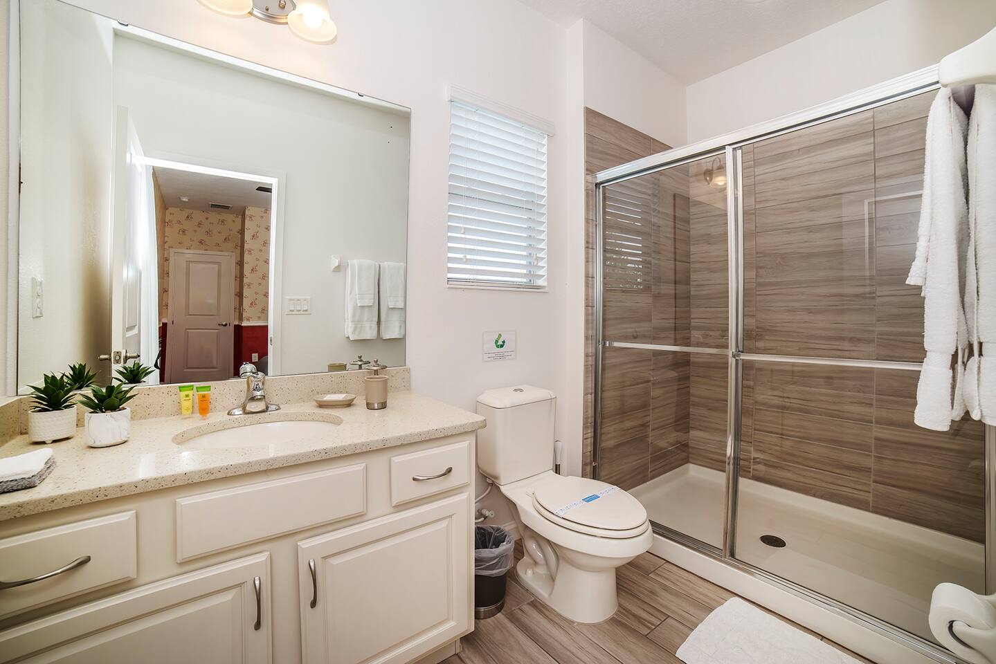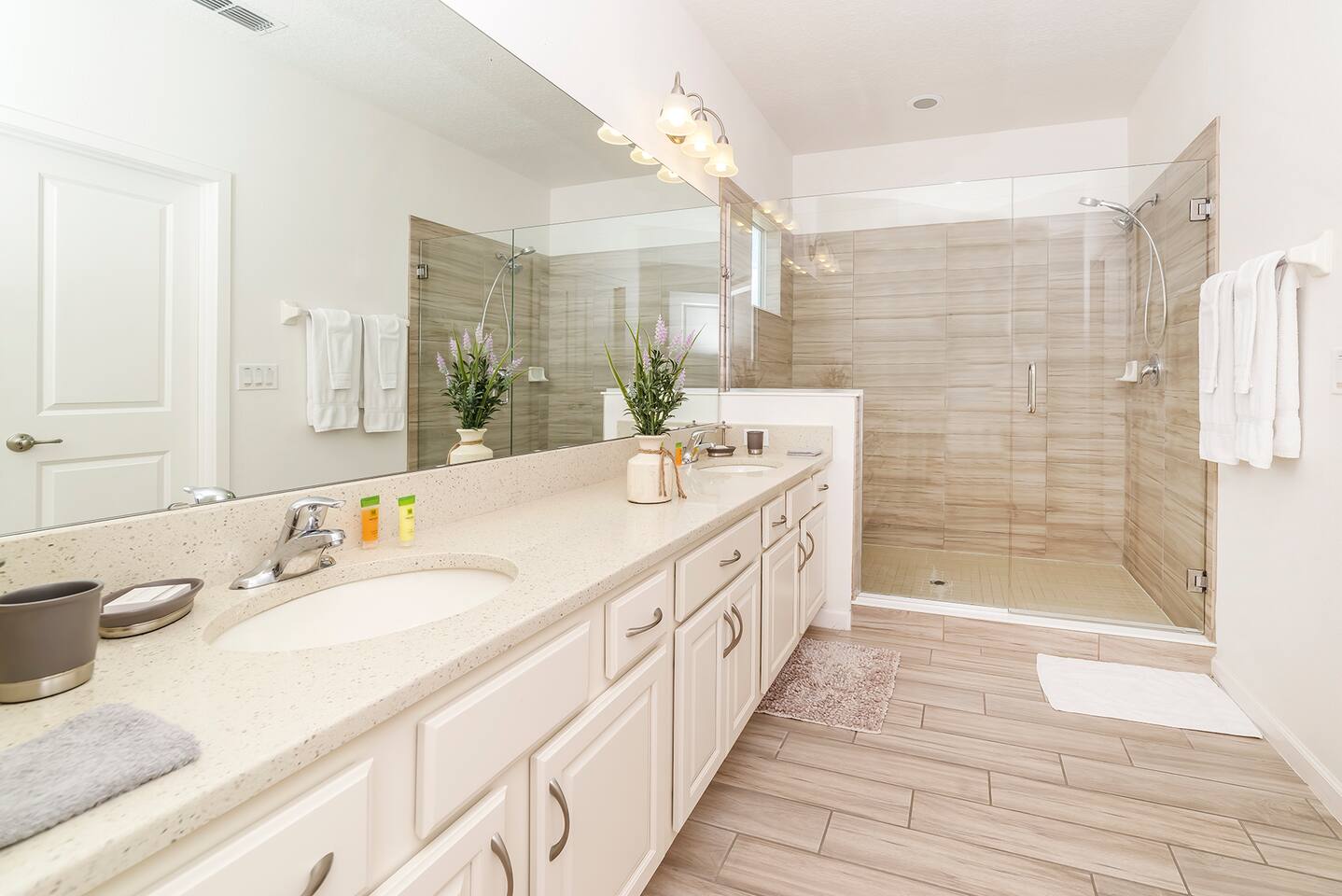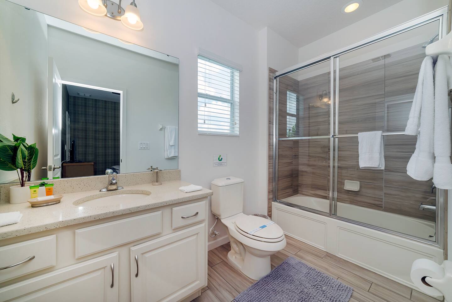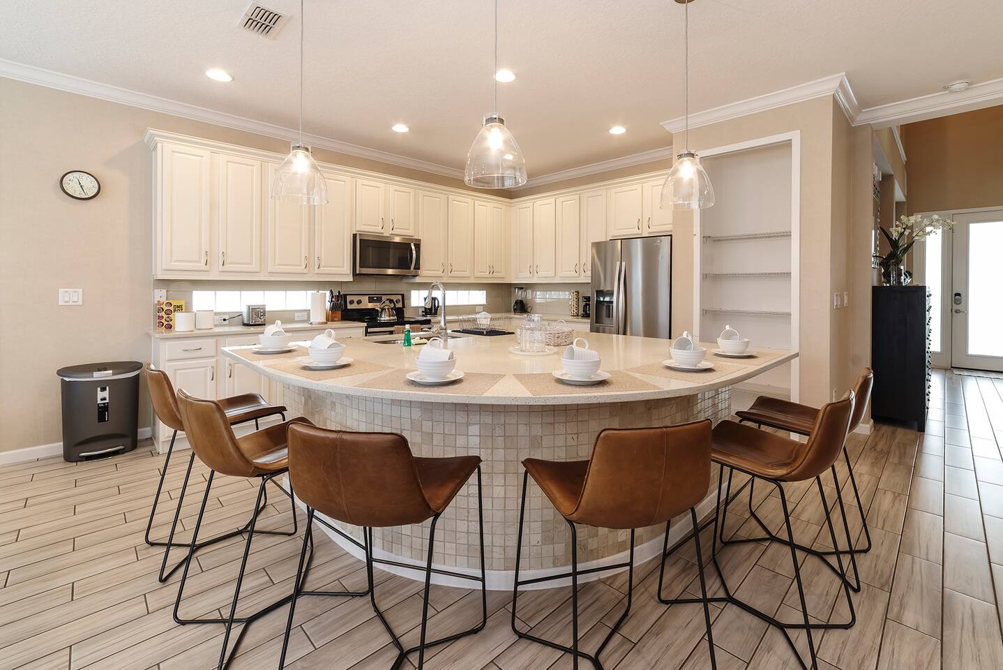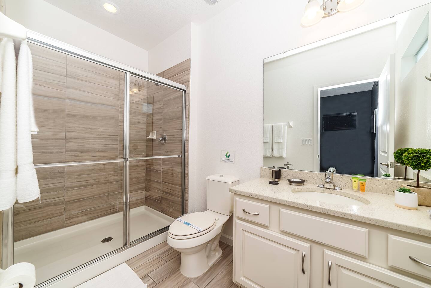 🌴Discover Comfort, Design & Nature in This Stunning Orlando Retreat This beautifully decorated home features high-end, designer furnishings and a soothing, contemporary color palette that creates a cozy, welcoming atmosphere. Every detail has been thoughtfully chosen to reflect modern style and elegance, offering a sense of comfort that evokes the world’s most cherished places. With 3,382 sqft (380 m²) of space, this exceptional home offers six bedrooms — including two luxurious master suites — each with its own private bathroom and flat-screen TV. There’s even a magical Disney-themed bedroom specially designed for kids! One master suite is located on the ground floor, perfect for convenience and accessibility, while the other is upstairs, close to the remaining four bedrooms — all equipped with ensuite bathrooms and located near the laundry area for added ease during longer stays. 🛋️ Relax & Unwind Gather with family and friends in the home’s private movie theater, complete with a 60” HD TV, mini kitchen, minibar, and microwave — ideal for winding down after a fun-filled day at the parks. 🍴 Cook & Connect The fully equipped gourmet kitchen flows seamlessly into the dining and living areas, featuring a 60” HD TV and two oversized glass doors that open up to the expansive patio. Step outside to enjoy a barbecue, soak in the sun, or take a dip in the heated (upon request) private pool and spa — your perfect outdoor sanctuary. 🌴 Resort-Style Amenities Located in a secure, gated resort with 24/7 gatehouse service, you’ll also have access to a Clubhouse with a state-of-the-art gym, a gorgeous resort-style pool, relaxing jacuzzis, and cascading waterfalls. Take a walk or ride a bike along scenic trails surrounded by lakes, wildlife, and nature — the community sits at the start of Shingle Creek, the headwaters of the Florida Everglades. ✨ Whether you're here for a vacation, a celebration, or just to relax, this home invites you to fall in love with every moment. Make your stay in Orlando truly memorable and filled with joy. 💡 Extra Services & Fees: Pool heater: $50/day (for the entire stay) Optional daily cleaning: $150/day Propane for grill: $50 per bottle (upon request) No smoking: $200 fine Parking: 2 spaces in front of the home; additional parking available at the Clubhouse. Cars parked on grass or sidewalks may be towed at guest’s expense. 🧺 A few last details: The home is fully equipped, so you’ll have everything you need from the moment you arrive — linens, towels, and kitchen essentials. If you need anything during your stay, don’t hesitate to reach out to Bruna, your friendly host.